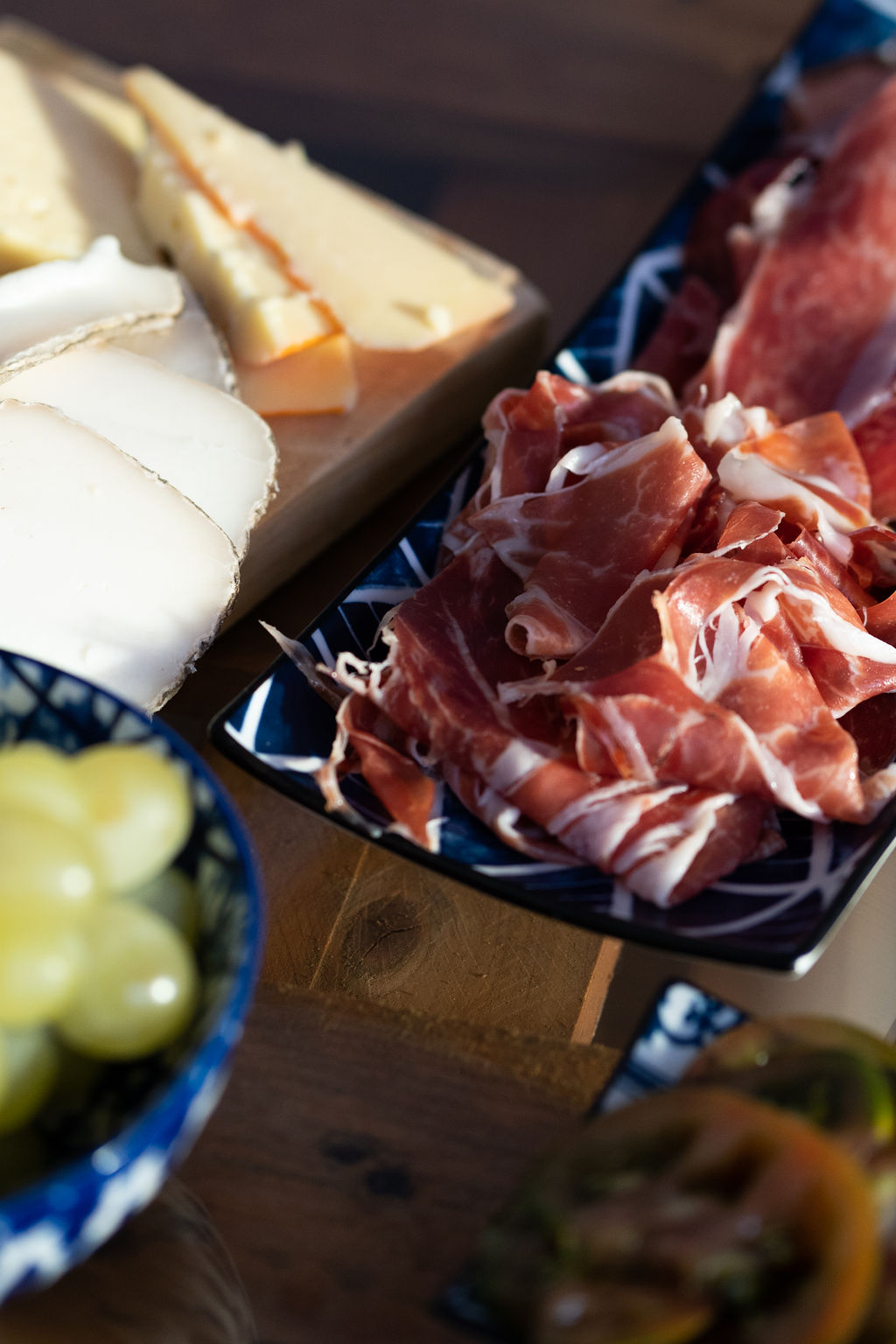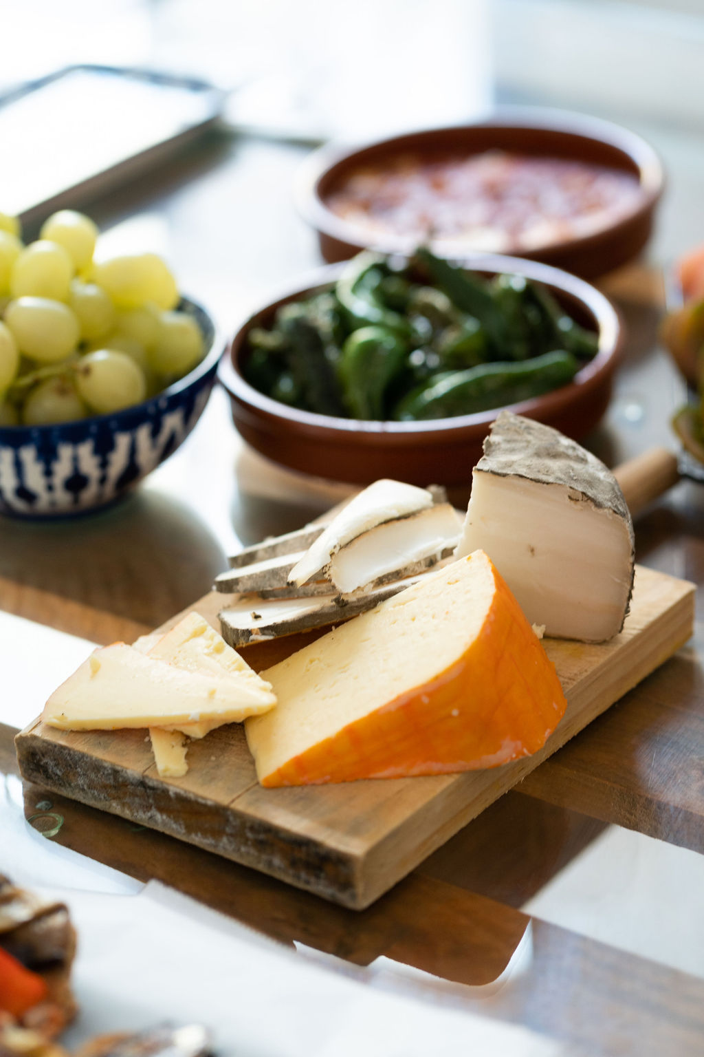 - Starters: Catalan cheese selection with sauces, Catalan sausage, Serrano and Iberico ham, tomato selection, fruits, artisan olive oil