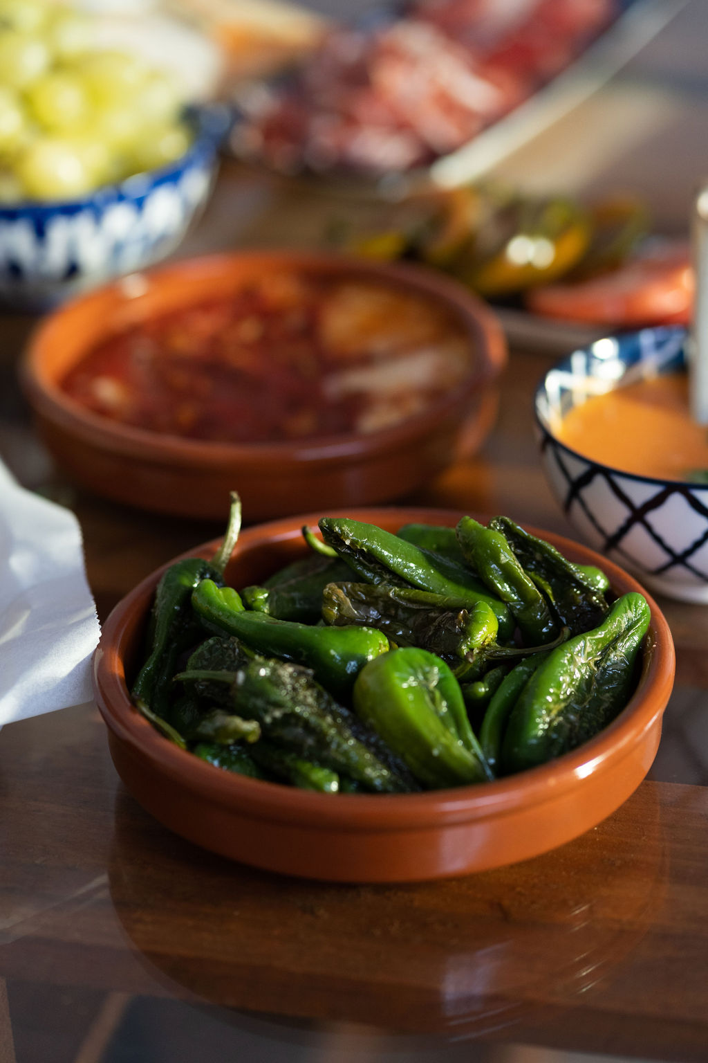- Starters: Catalan cheese selection with sauces, Catalan sausage, Serrano and Iberico ham, tomato selection, fruits, gazpacho, artisan olive oil