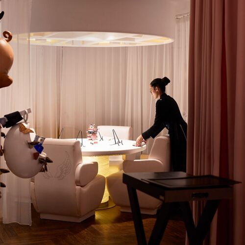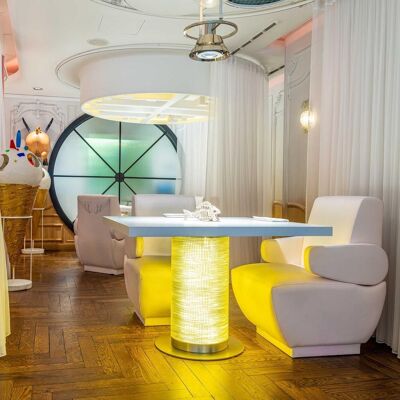 His fusion cuisine, which also incorporates Asian elements, uses mostly local Spanish ingredients, but he will try his hand at anything from around the world if he feels like it. His concept was also successful in London, but he had to close his restaurant there during Covid. The Madrid restaurant is visually unusual, with its bright yet cozy nooks and futuristic shapes.