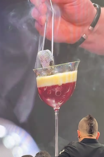One of the dishes presented was peat nut saké with fried caviar. The kefir water is fermented three times until it reaches a flavor reminiscent of a mushroom and cheese pasta. The master said, “You have no idea what this drink is, you just feel that it’s incredibly special, supermega hyperaromatic!”